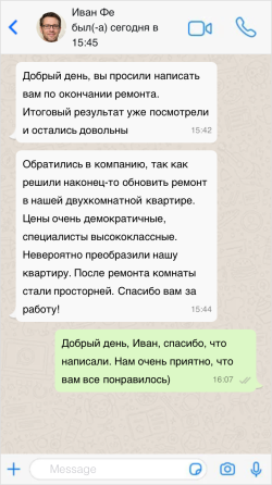 Выполняем доставку строительных материалов, создадим дизайн-проект по желанию заказчика. На цену ремонта действует площадь помещения, срок работы и выбор строительных материалов. Выполним ремонт в любой комнате: в гостиной, кухне, туалете, спальне, в независимости, от того живете вы в хрущёвке или новостройке.